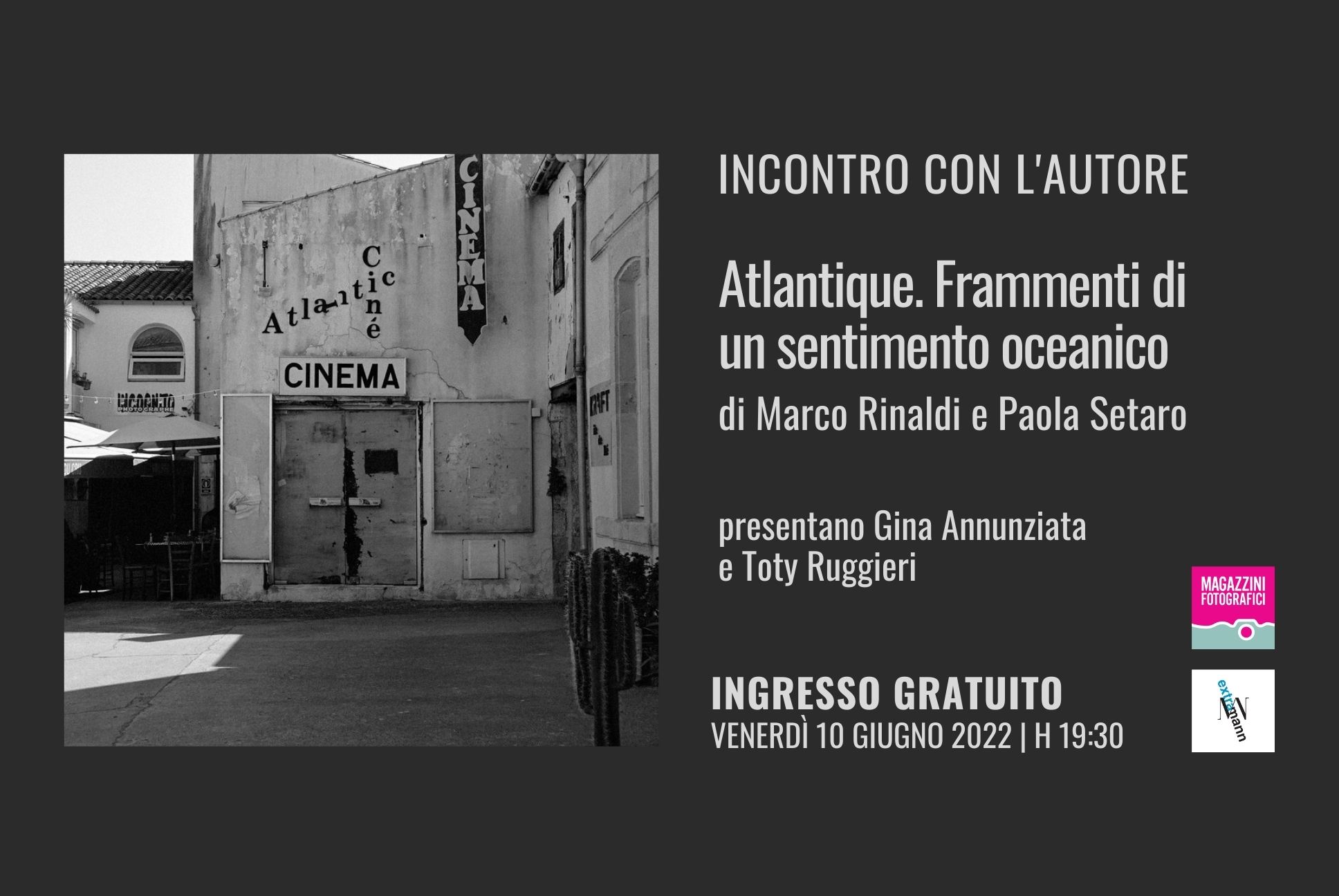 Il 10 giugno 2022 alle 19:30 verrà presentato, negli spazi di Magazzini Fotografici, “Atlantique. Frammenti di un sentimento oceanico” il nuovo libro di Marco Rinaldi e Paola Setaro, ospiti per l’occasione insieme a Gina Annunziata e Toty Ruggieri che condurranno l’evento.